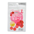 プエラリアミリフィカ末、ストロベリー果汁、ローズオイル(バラの花びら抽出物)、ザクロエキス、ローズヒップ末、セルロース、ショ糖脂肪酸エステル、香料、微粒二酸化ケイ素