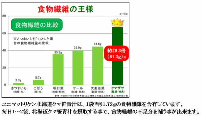 原材料クマザサ粉末、難消化性デキストリン、イソマルトオリゴ糖、海藻エキス